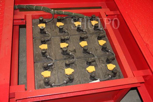 蓄電池給直流牽引電機提供電能,直流電機提供動力帶動平車運行。直流電機與交流電機相比它有不易燒損,起動力矩大,過載能力強的優點。與電纜卷線式、低壓軌道供電式兩種系列平車相比,蓄電池式具有更大的安全性能和機動性、靈活性,對軌道鋪設要求不高,故施工方便,費用低廉。
